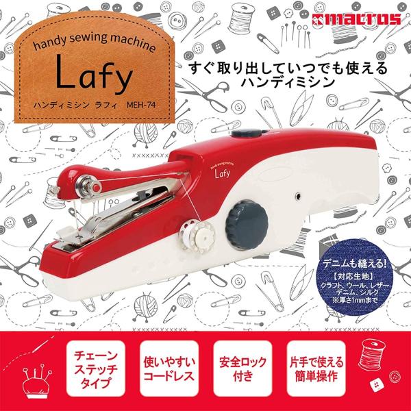 マクロス 小型 電動 ハンディミシン デニム対応 ラフィ (乾電池 または アダプタ式) MEH-74