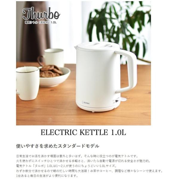 ドリテック 電気ケトル タルボ 1.0L ホワイトPO-360 WT