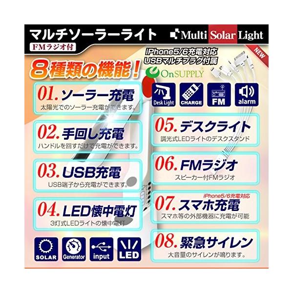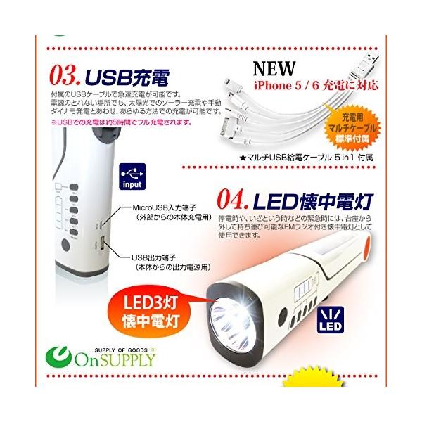 (ソーラー充電/手回し充電/USBバスパワー充電)