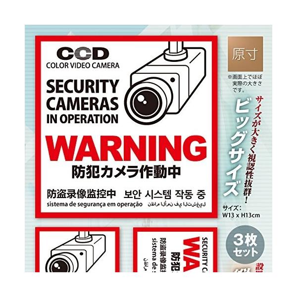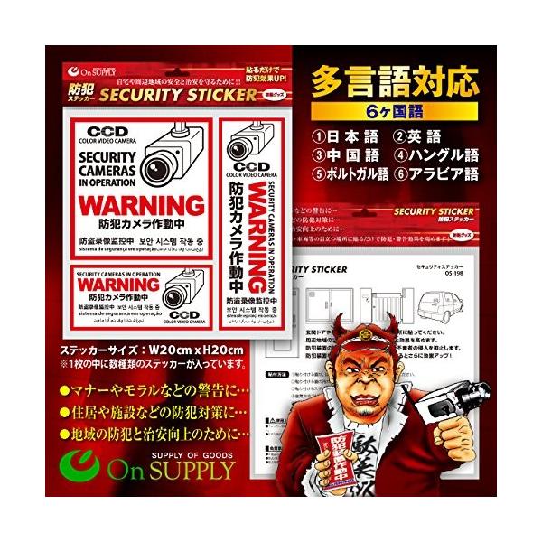 防犯カメラやダミーカメラの効果UPに防犯シール セキュリティステッカー 「防犯カメラ作動中」 (OS-198) 多言語対応