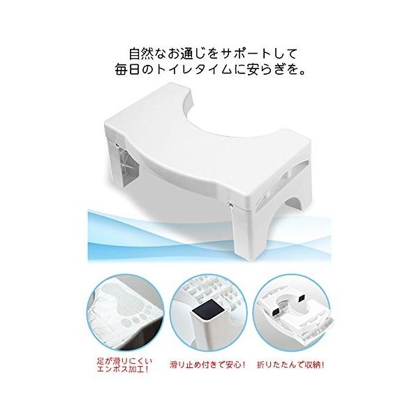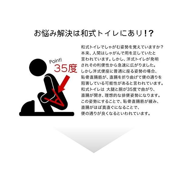前傾姿勢になることで、腹部に力を入れることなく、足からの腹圧でお通じをサポートします。
