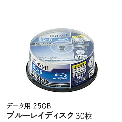マクセル maxell 【BD-R】データ用ブルーレイディスクBD-R 「Plain style」 (1~4X対応)_ インクジェットプリンター対応品_ (30枚スピンドル) BR25PPLWPB.30SP