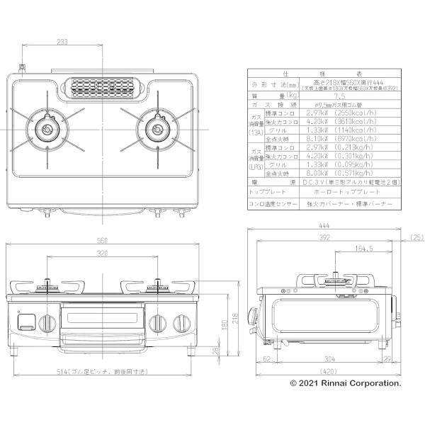 リンナイ製の従来タイプに比べて、約3.6cm左右に広がった