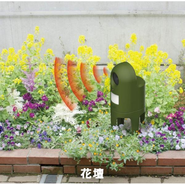 防滴構造なので庭先や屋外など、ネコの被害が気になる場所に設置可能。