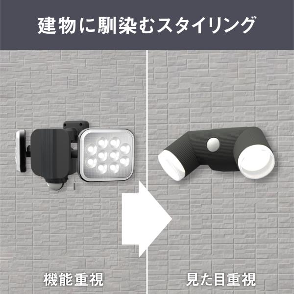 ■建物の外観をくずさないシンプルなデザインのセンサーライト。