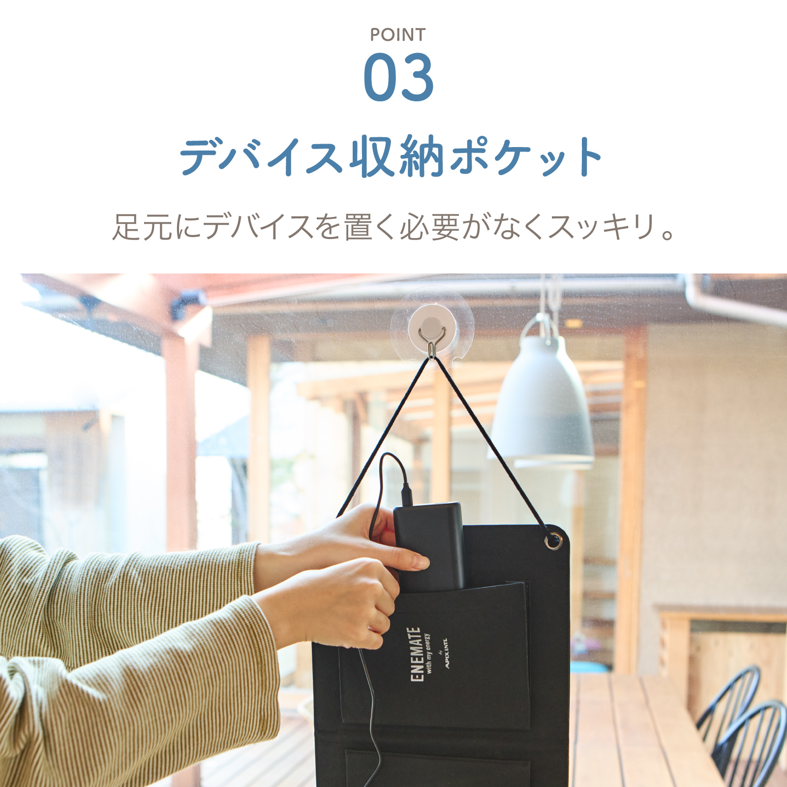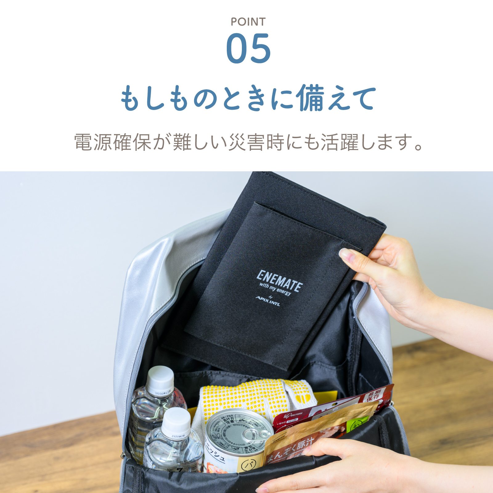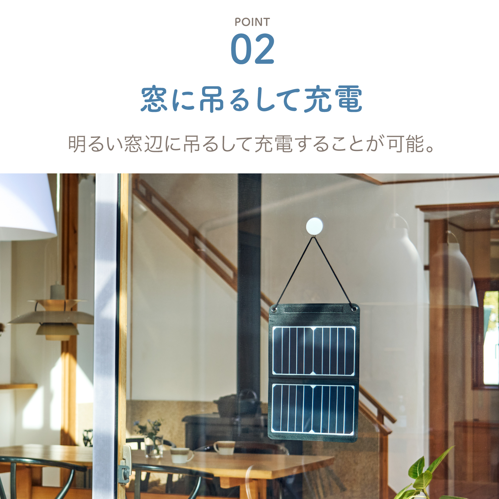 - 太陽光を電気に変えて充電できるソーラー充電器です。
