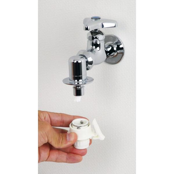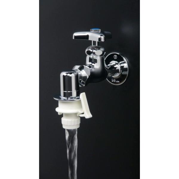 ストッパー付の洗濯機ニップルから水を出すことができる