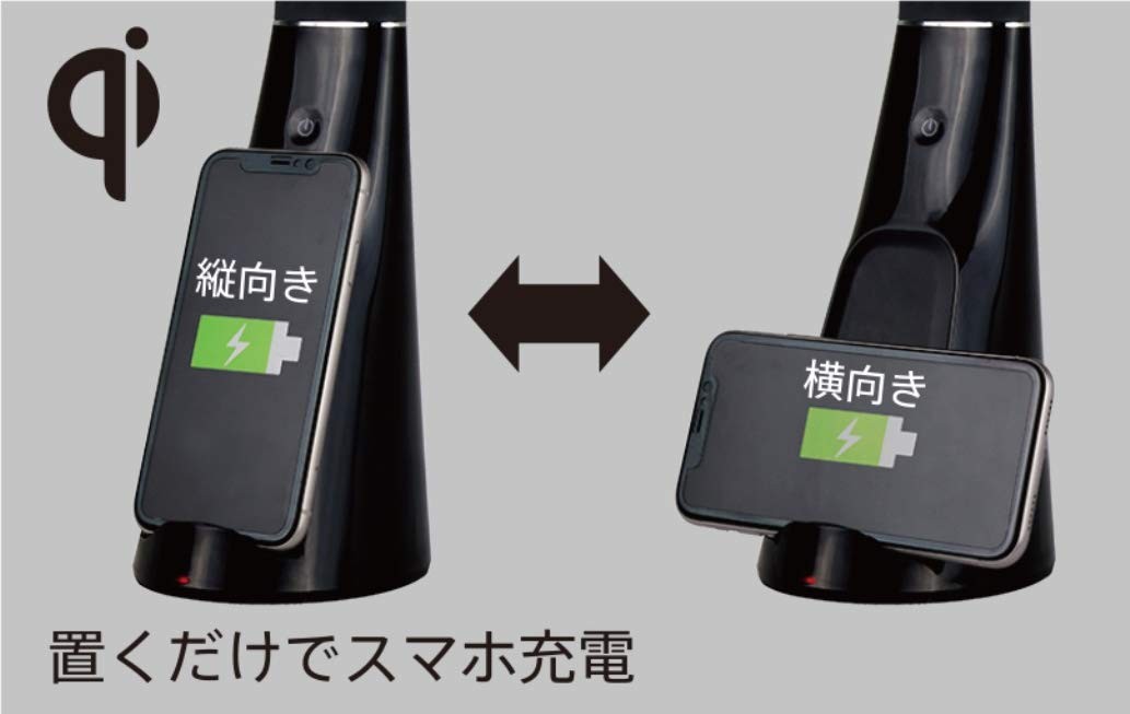 ゼピール LEDスタンドライト スマホワイヤレス充電(Qi)/USB充電対応 ブラック DQL-H1009-BK