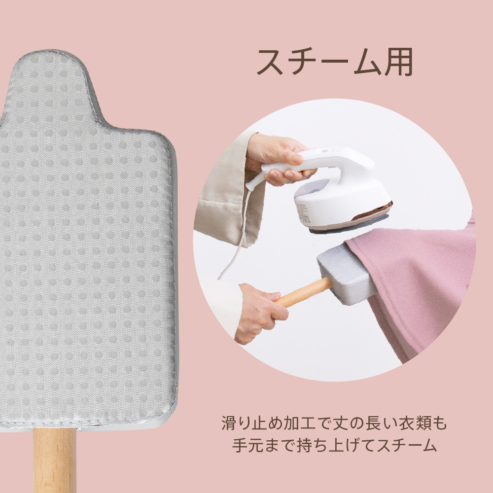 ●滑り止め付きで丈の長い衣類も手元で楽々スチームがけできる