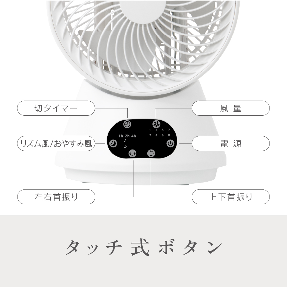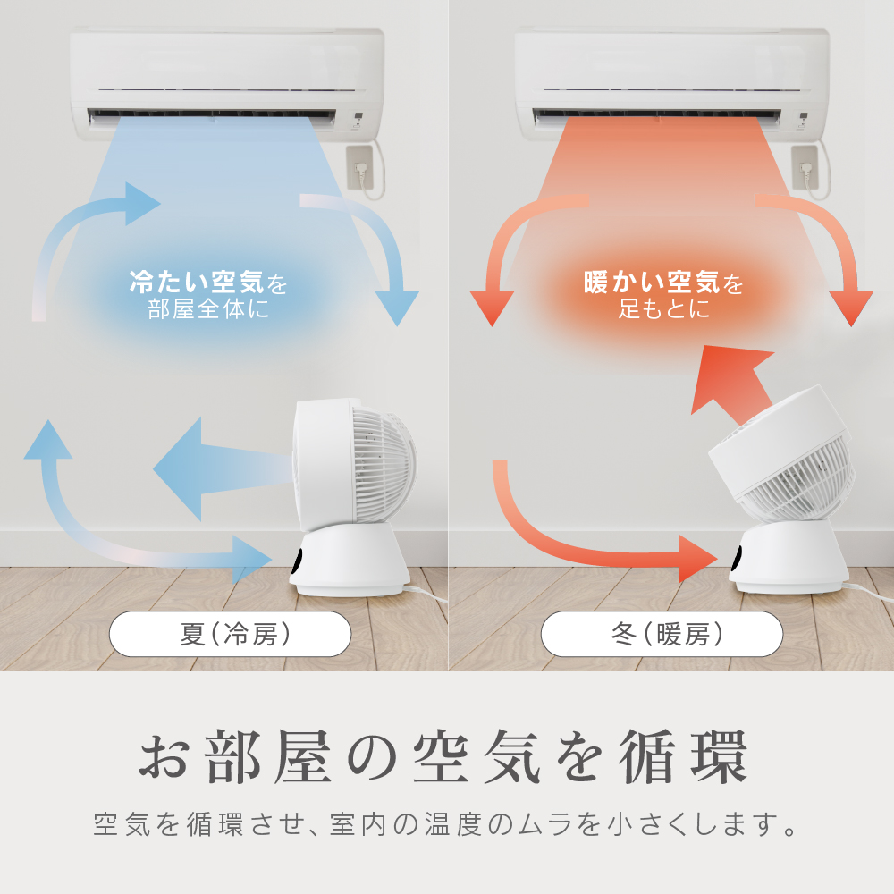 立体的な送風を可能にしたDCリモコンサーキュレーター ・風量:8段階