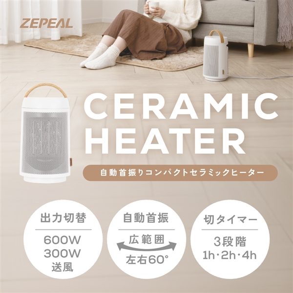 ZEPEAL(ゼピール) 自動首振りコンパクトセラミックヒーター ZCS-06B-H