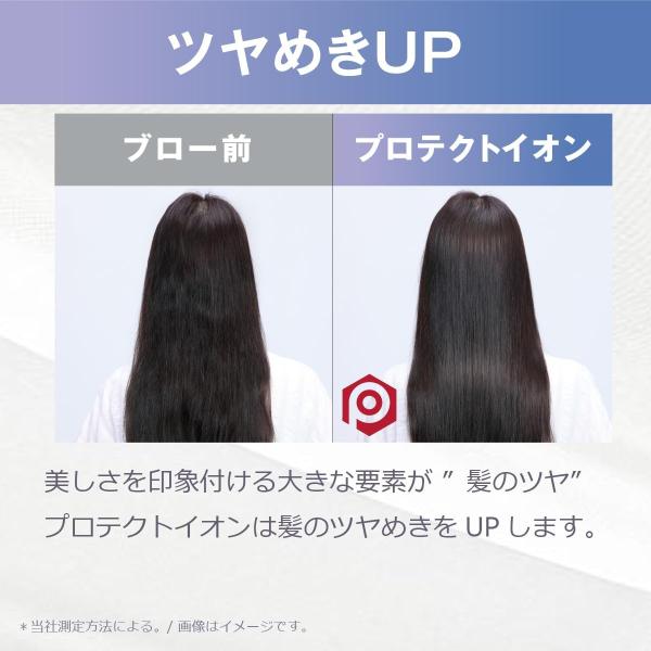 ◆プロテクトイオンの効果:髪の広がりを抑える ※メーカー測定方法/当社比較検証法による。