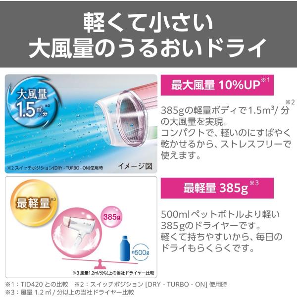 ※1:TID420との比較※2 :スイッチポジション[DRY - TURBO - ON]使用時