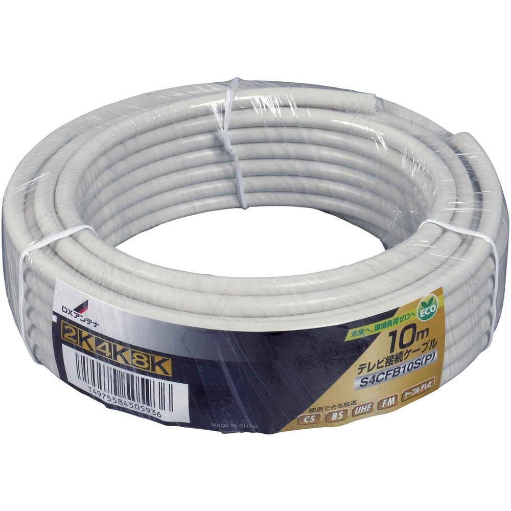 DXアンテナ 同軸ケーブル 【2K 4K 8K 対応】 10m 両端無加工 S-4CFB ホワイト S4CFB10S(P)