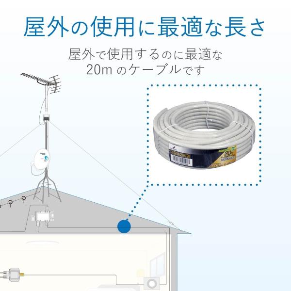 DXアンテナ 同軸ケーブル 【2K 4K 8K 対応】 20m 両端無加工 S-5CFB ホワイト S5CFB20S(P)